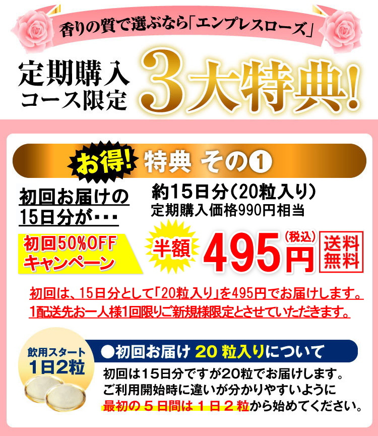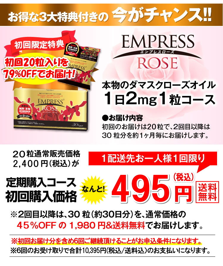 商品名 【定期購入 送料無料】エンプレスローズ(毎月30粒) 初回発送は半月分(20粒入り)を495円でお届け!